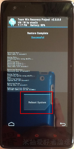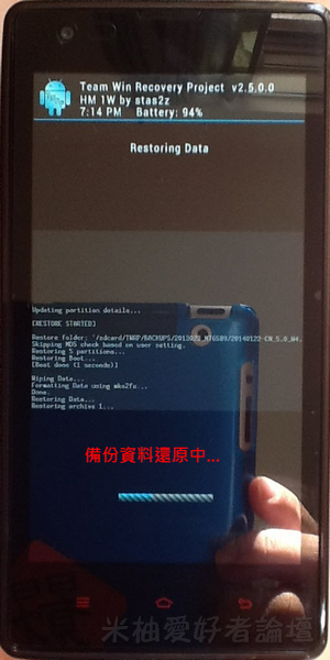 刷入HM1W-TWRP-2.5.0.0-stas2z.zip顯示done完成重開機